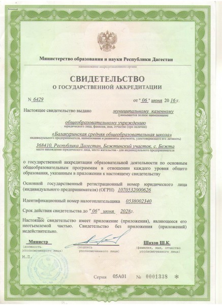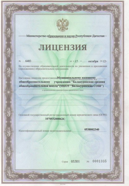 | Полное наименование образовательной организации* | Муниципальное казённое образовательное учреждение "Балакуринская средняя общеобразовательная школа" |