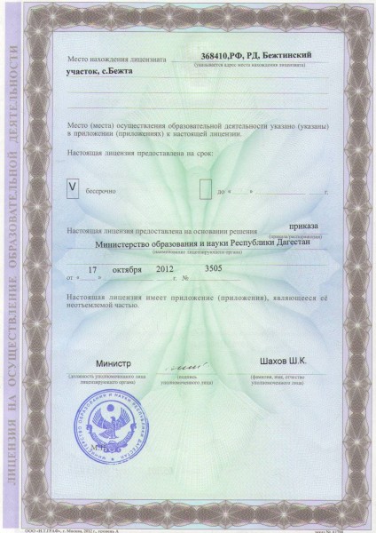 | Адрес местонахождения образовательной организации* | 368410, Цунтинский район, с. Бежта |